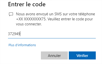 Renseigner le code reçu par SMS puis cliquer sur vérifier.