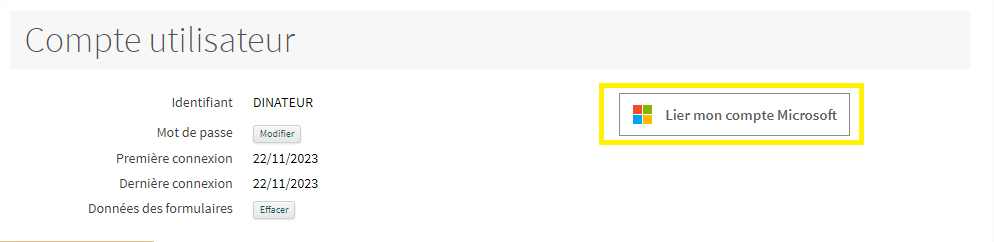 Une fois validé la ligne « Compte Microsoft » suivi du mail de l’utilisateur apparaitra dans le résumé du compte utilisateur dans NetYparéo.