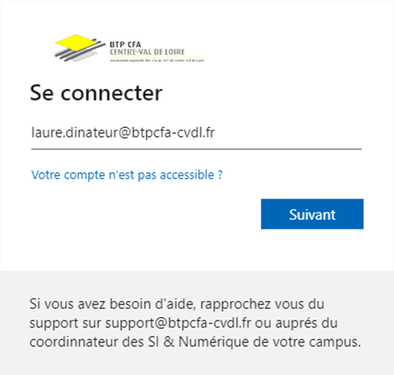 l’écran de connexion Microsoft Online, il faut renseigner les identifiants