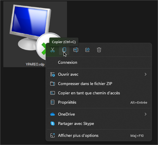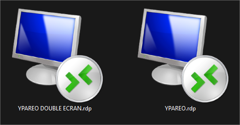 Pour accéder à YPAREO nous utilisons un fichier avec l'extension .RDP ce qui nous permet, pour résumer, d’accéder à un ordinateur dans notre ordinateur. Par défaut le RDP n'occupe qu'un seul de nos écrans mais il est possible de profiter de cet ordinateur dans notre ordinateur sur tous nos écrans.