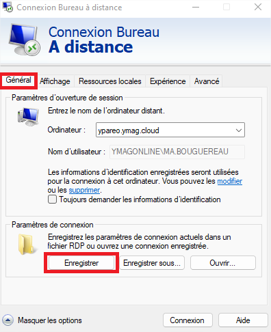 Nous allons donc rentrer dans une configuration plus avancée de notre raccourci .rdp car toutes les options ne sont pas affichées de base. Pas de panique il suffit de suivre le guide !